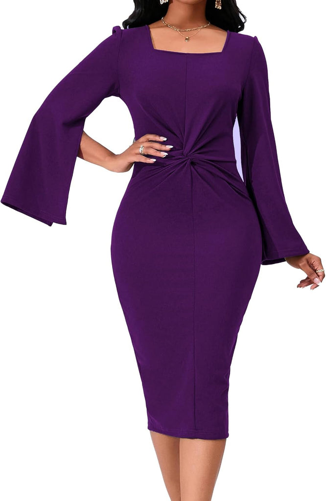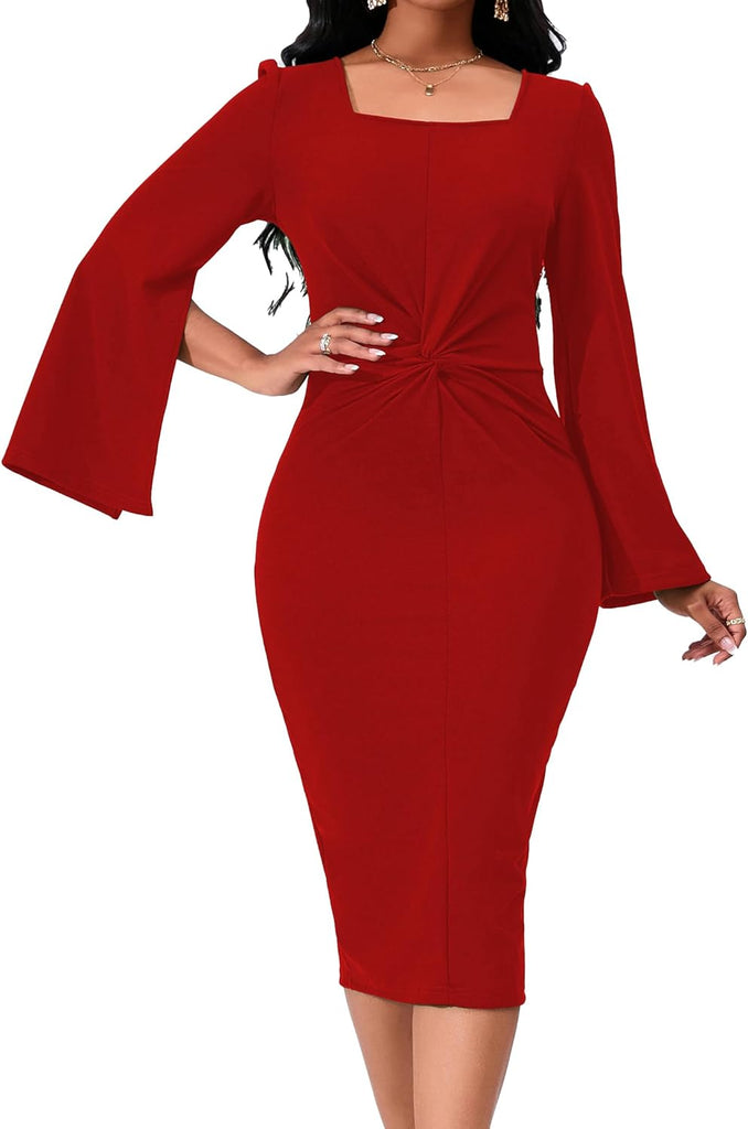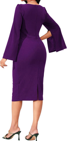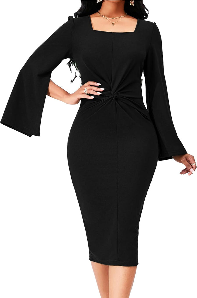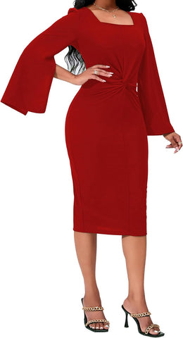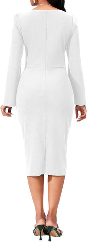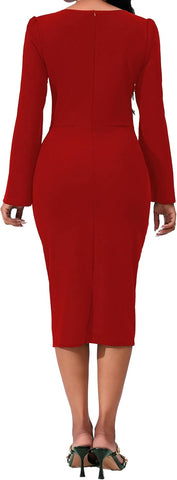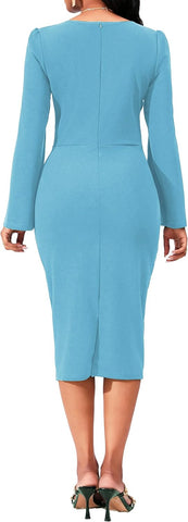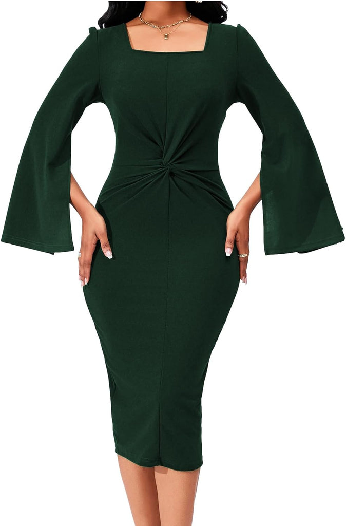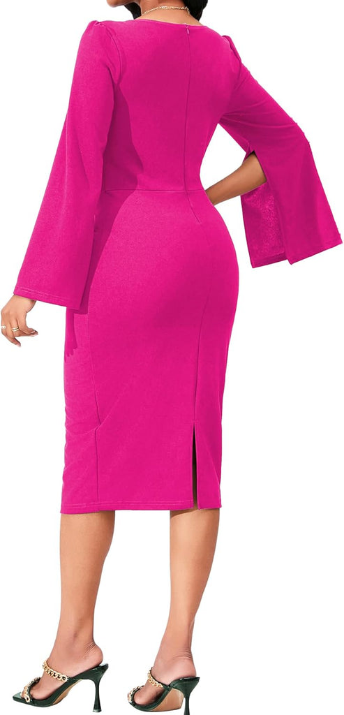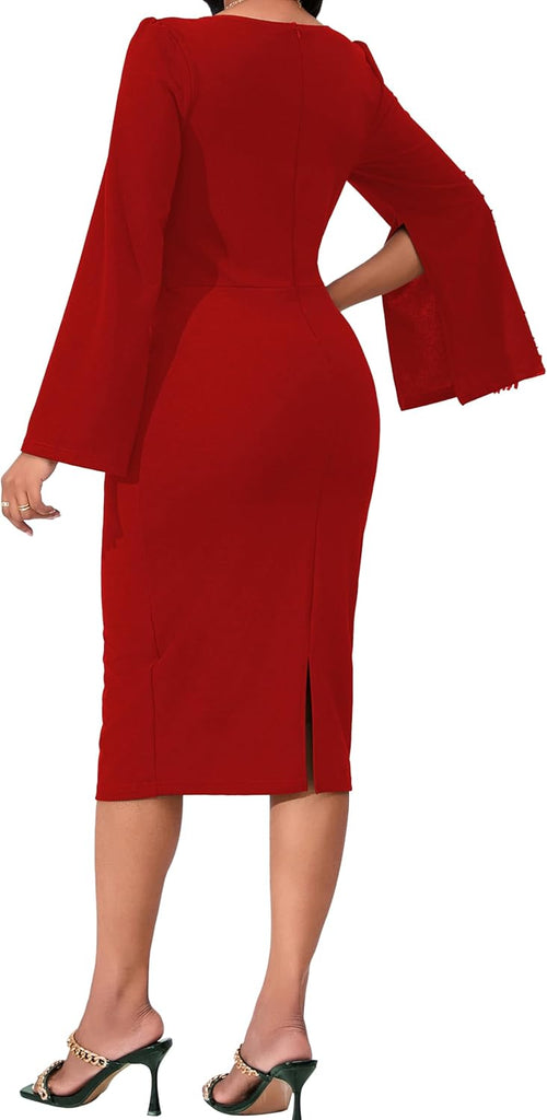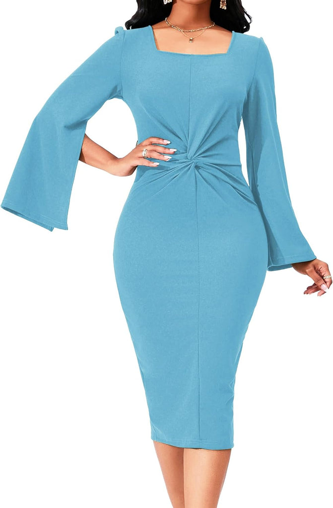 Elegant Dresses for Women Sexy Church Long Ruffles Sleeve Business Pencil Vintage Peplum Dress Wear to Work