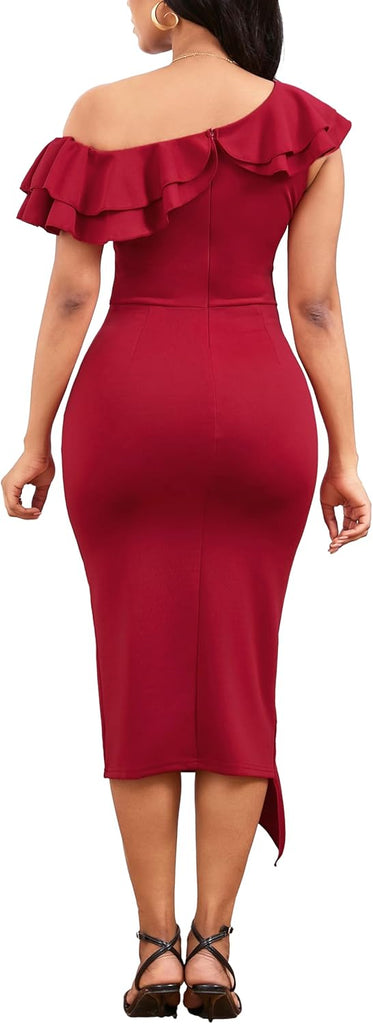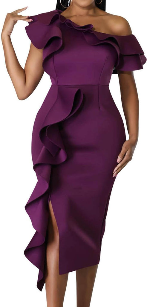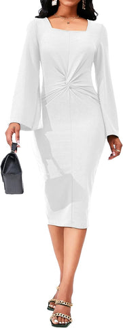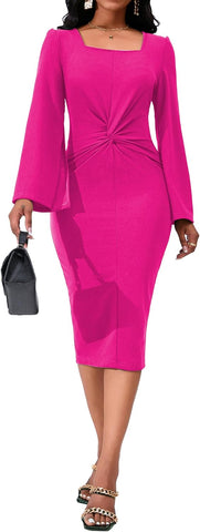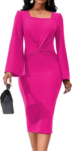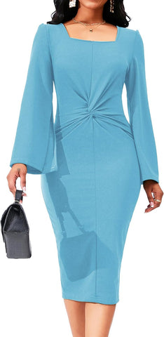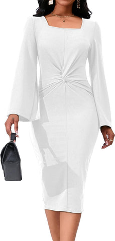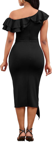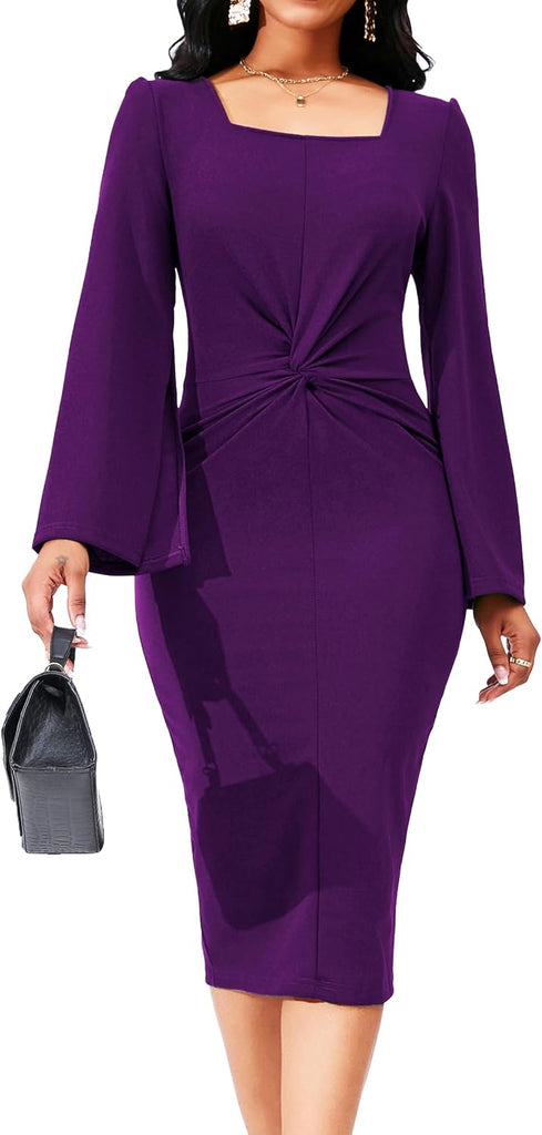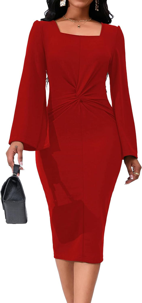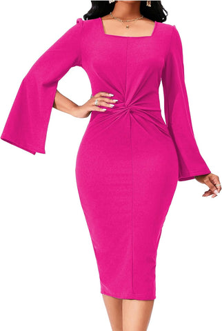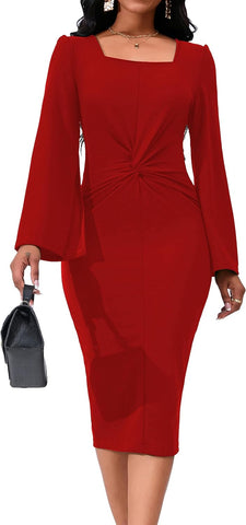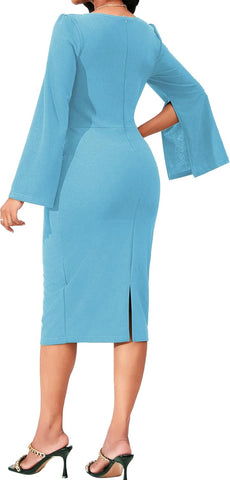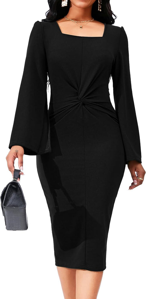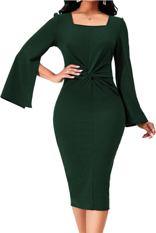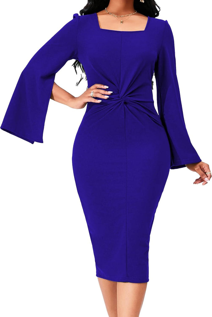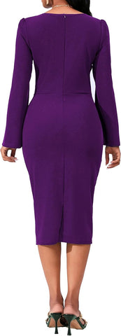 Elegant Dresses for Women Sexy Church Long Ruffles Sleeve Business Pencil Vintage Peplum Dress Wear to Work