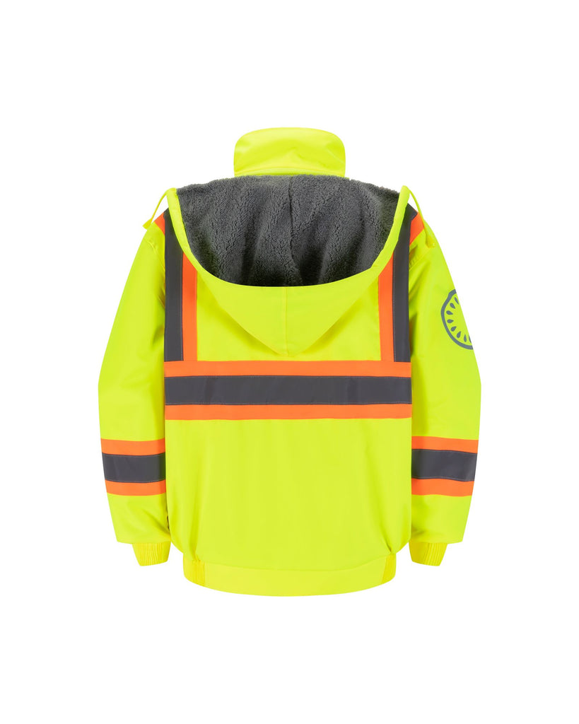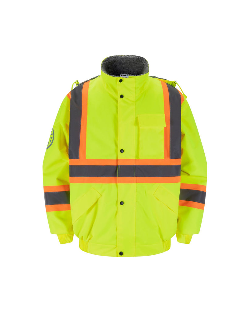 Kiwi Hooded and Lined ANSI/ISEA 107-2020, Type R, Class 2 Water Resistant Neon Safety Jacket – High Visibility and All-Weather Protection