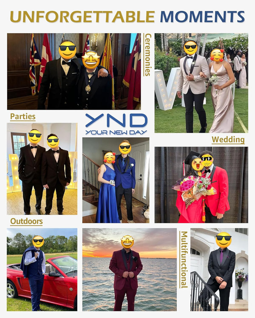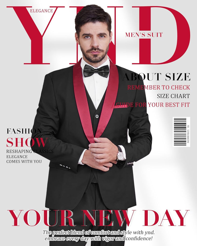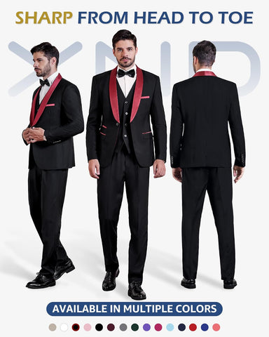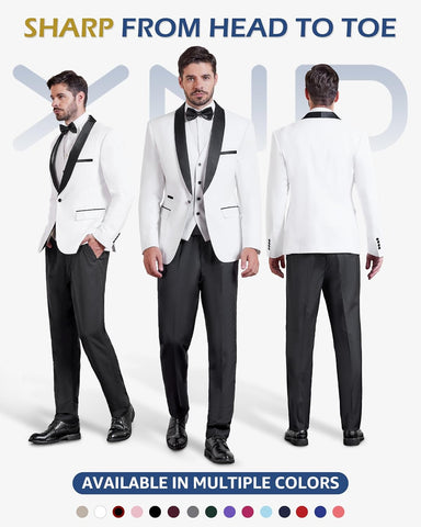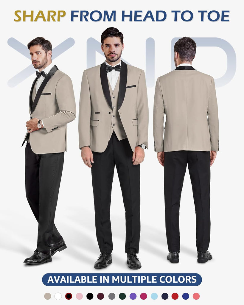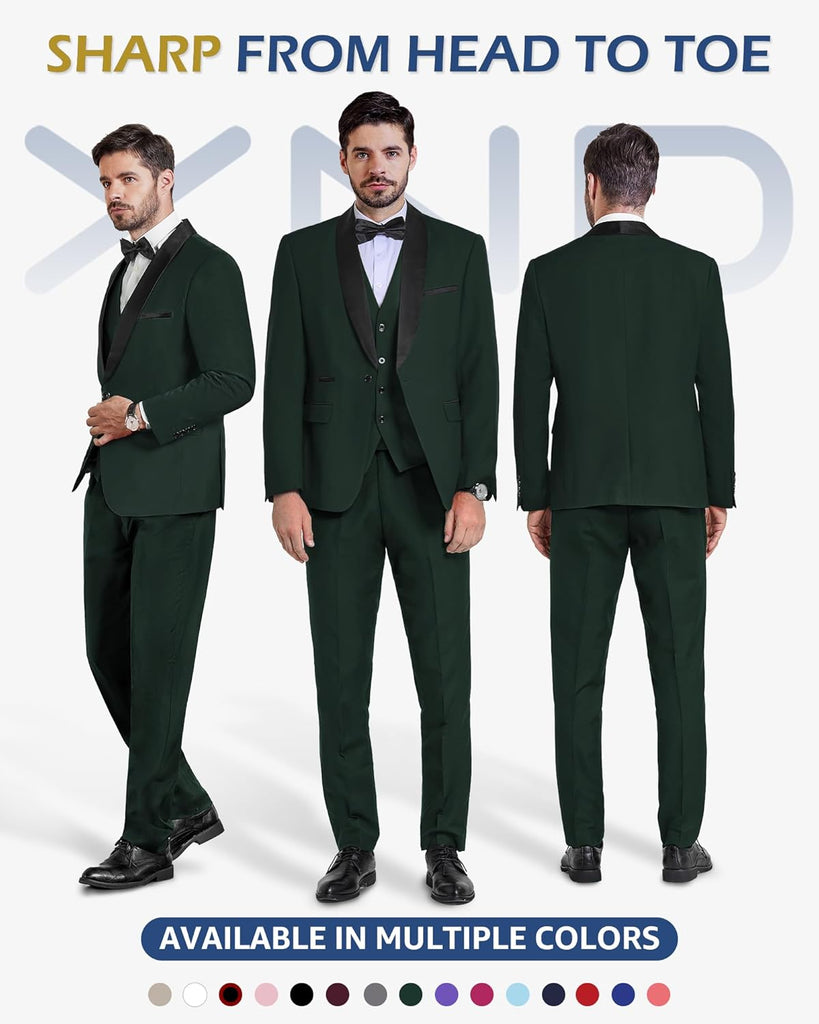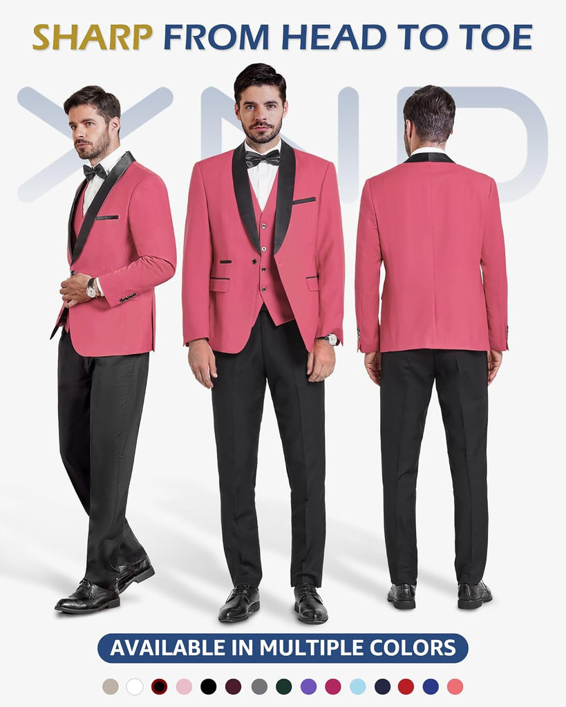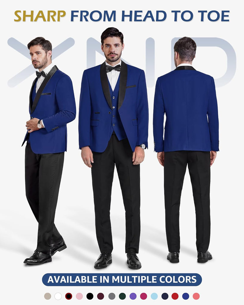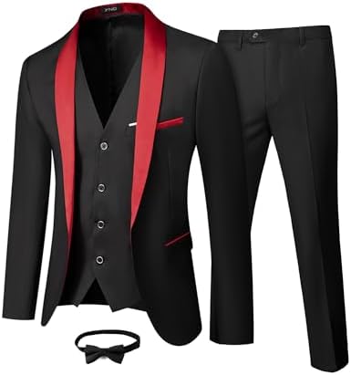 Men's 3 Piece Slim Fit Tuxedo Set, One Button Shawl Collar Solid Jacket Vest Pants with Bow TieMen's 3 Piece Slim Fit Tuxedo Set