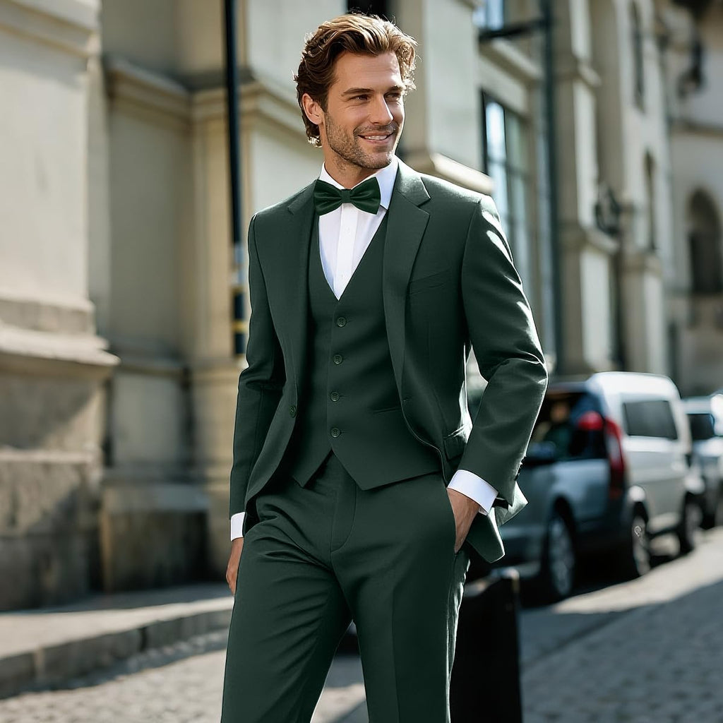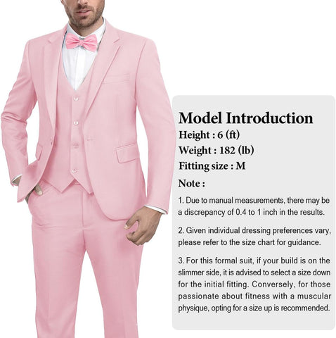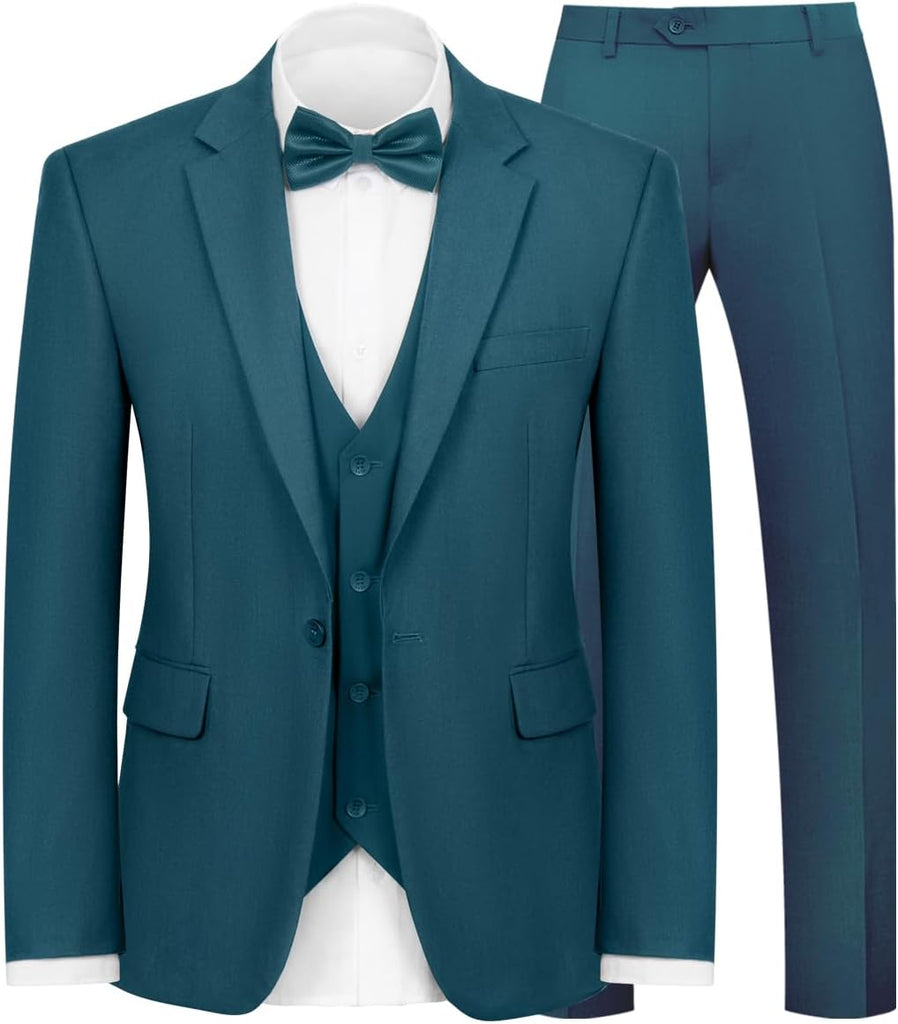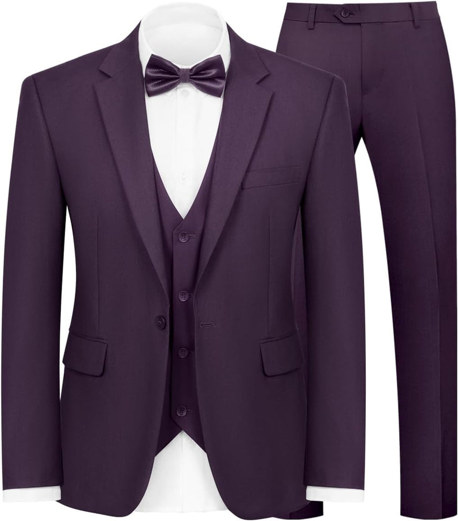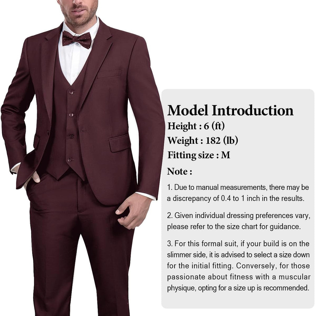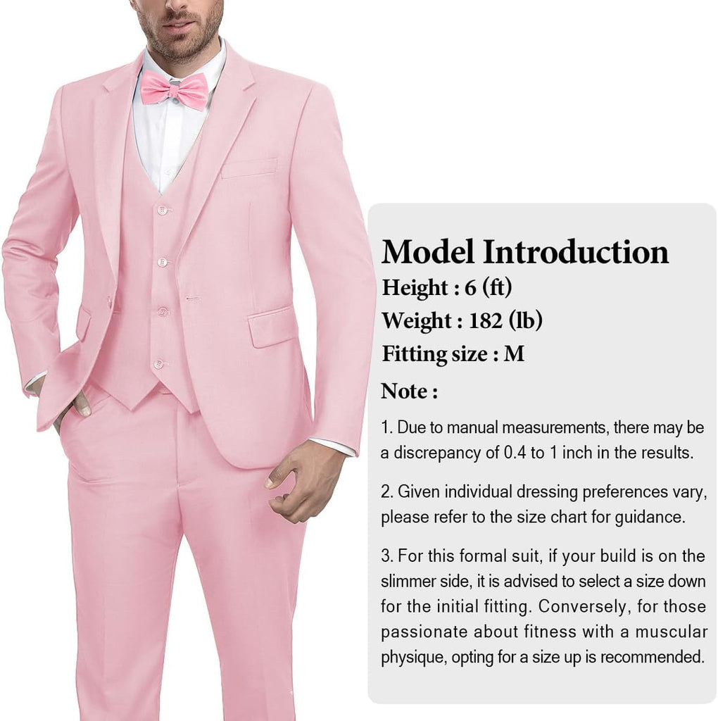 Men's 3-Piece Suit for Men Slim Fit Single Button Blazer Jacket Vest Pants Set Banquet Prom Wedding Business Party