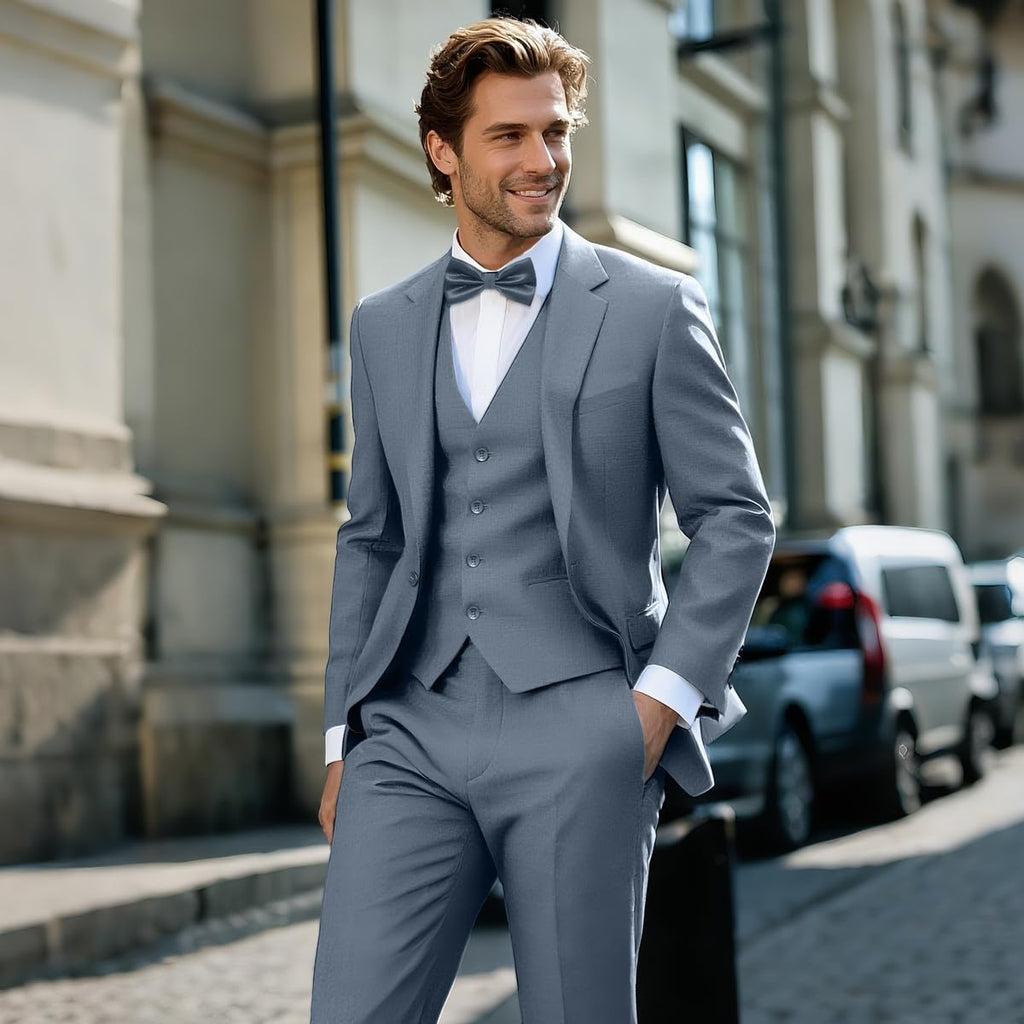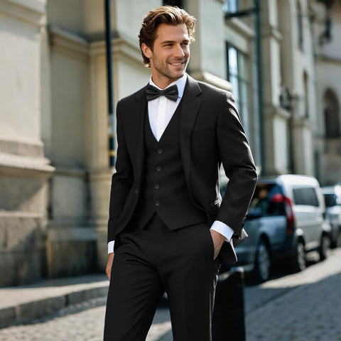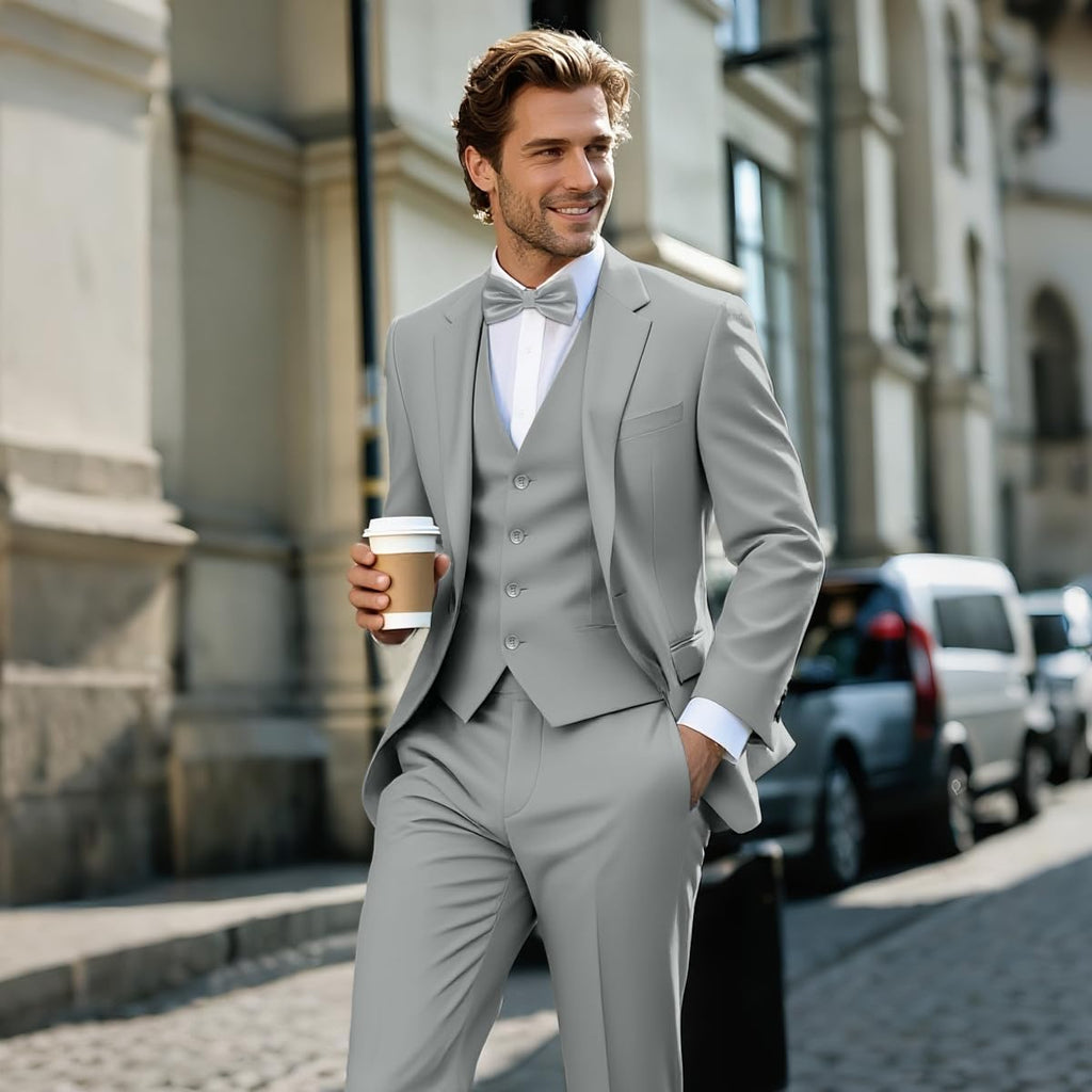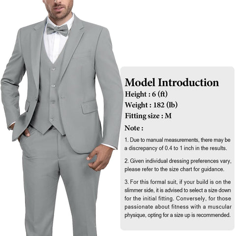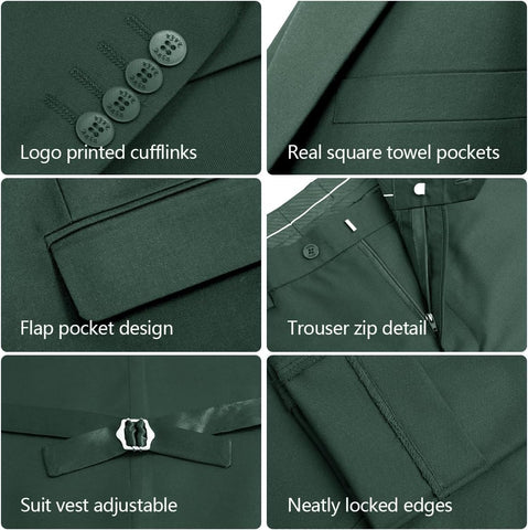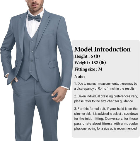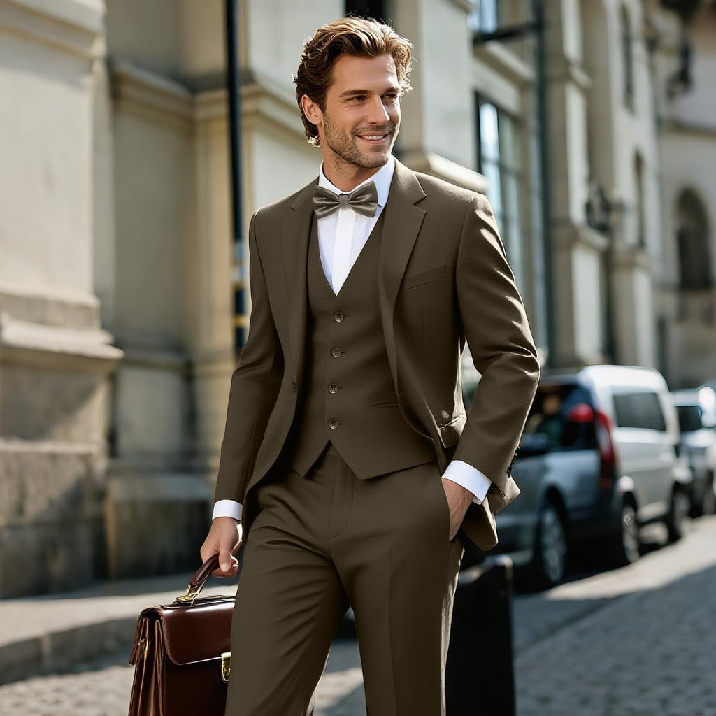 Men's 3-Piece Suit for Men Slim Fit Single Button Blazer Jacket Vest Pants Set Banquet Prom Wedding Business Party