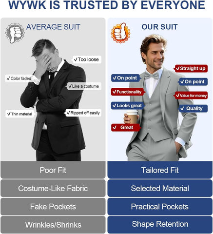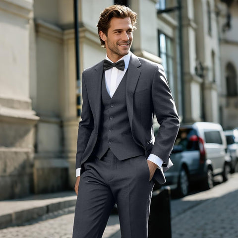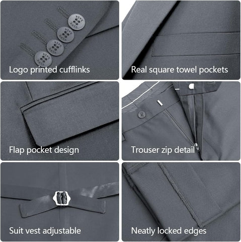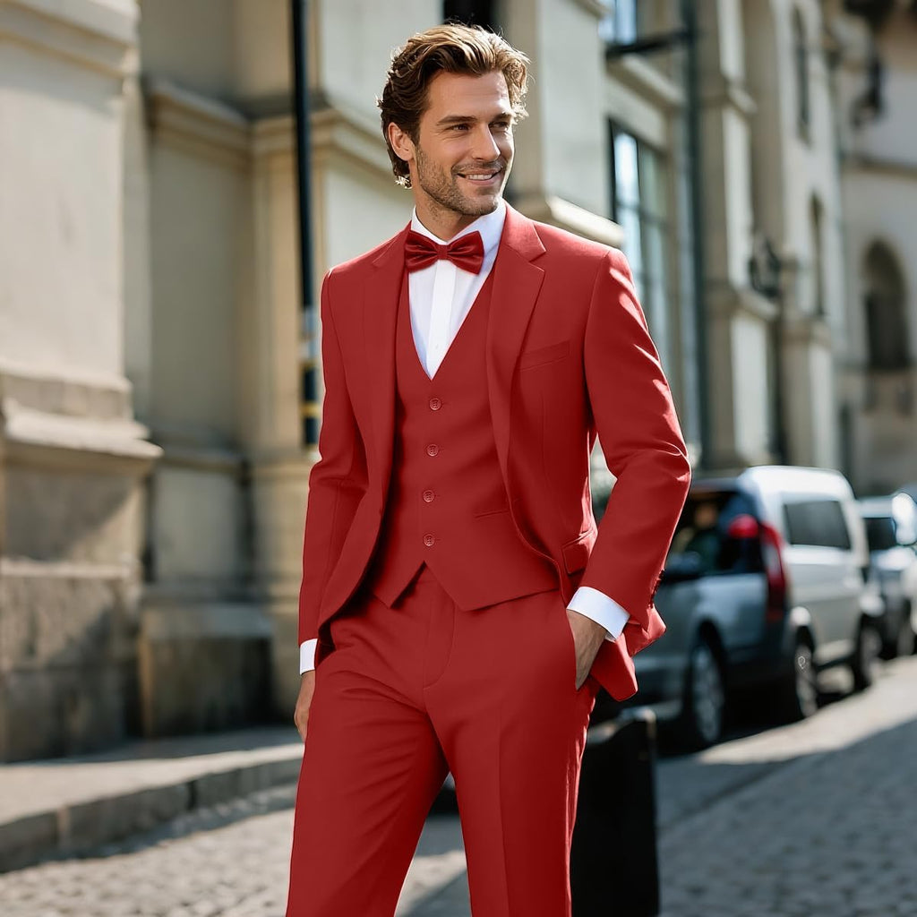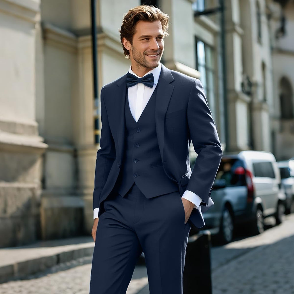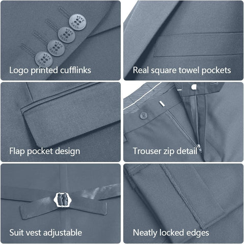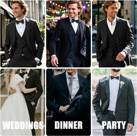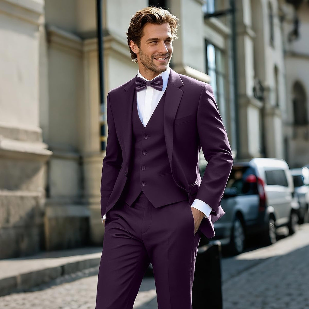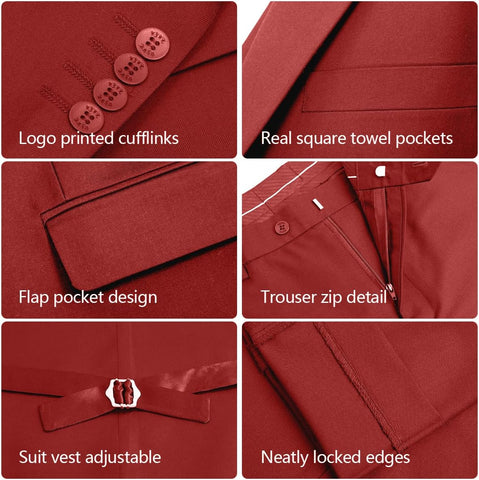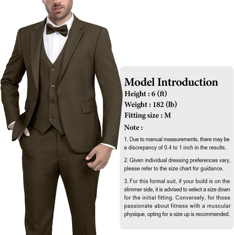 Men's 3-Piece Suit for Men Slim Fit Single Button Blazer Jacket Vest Pants Set Banquet Prom Wedding Business Party