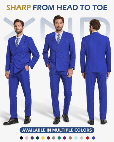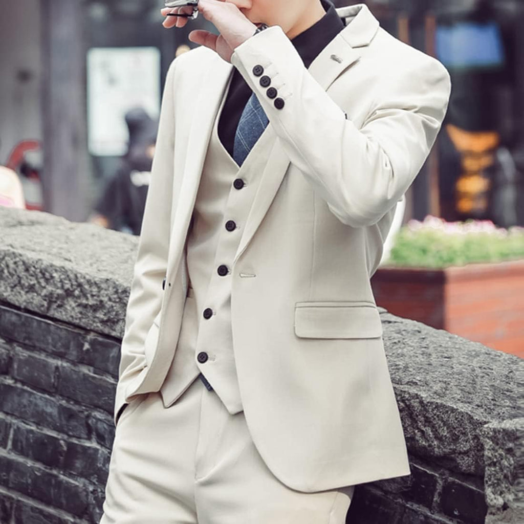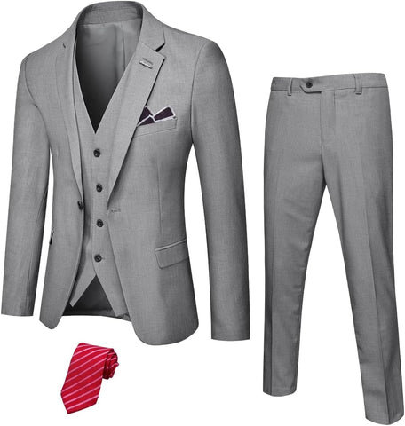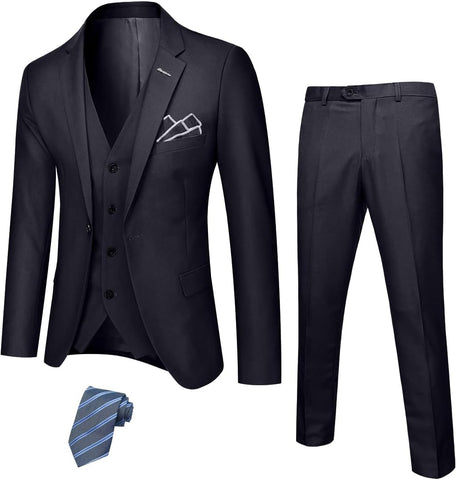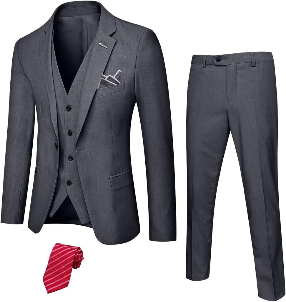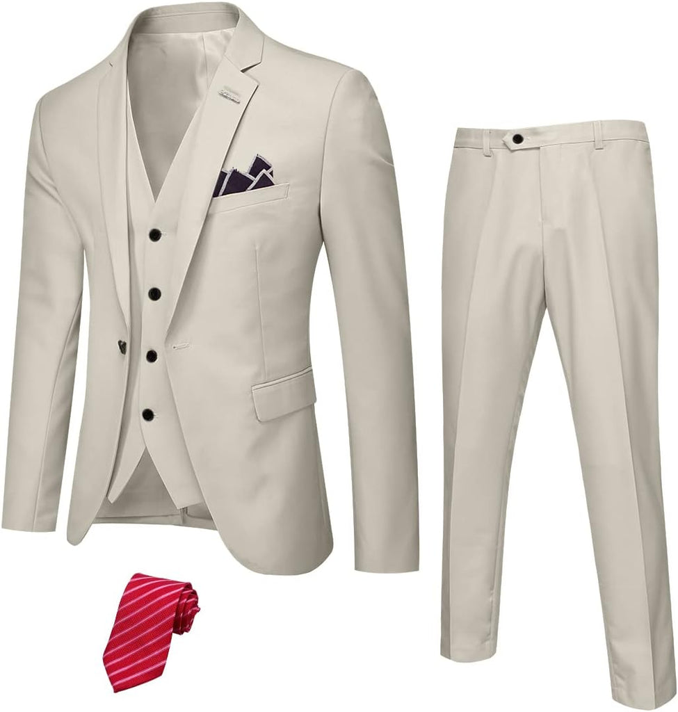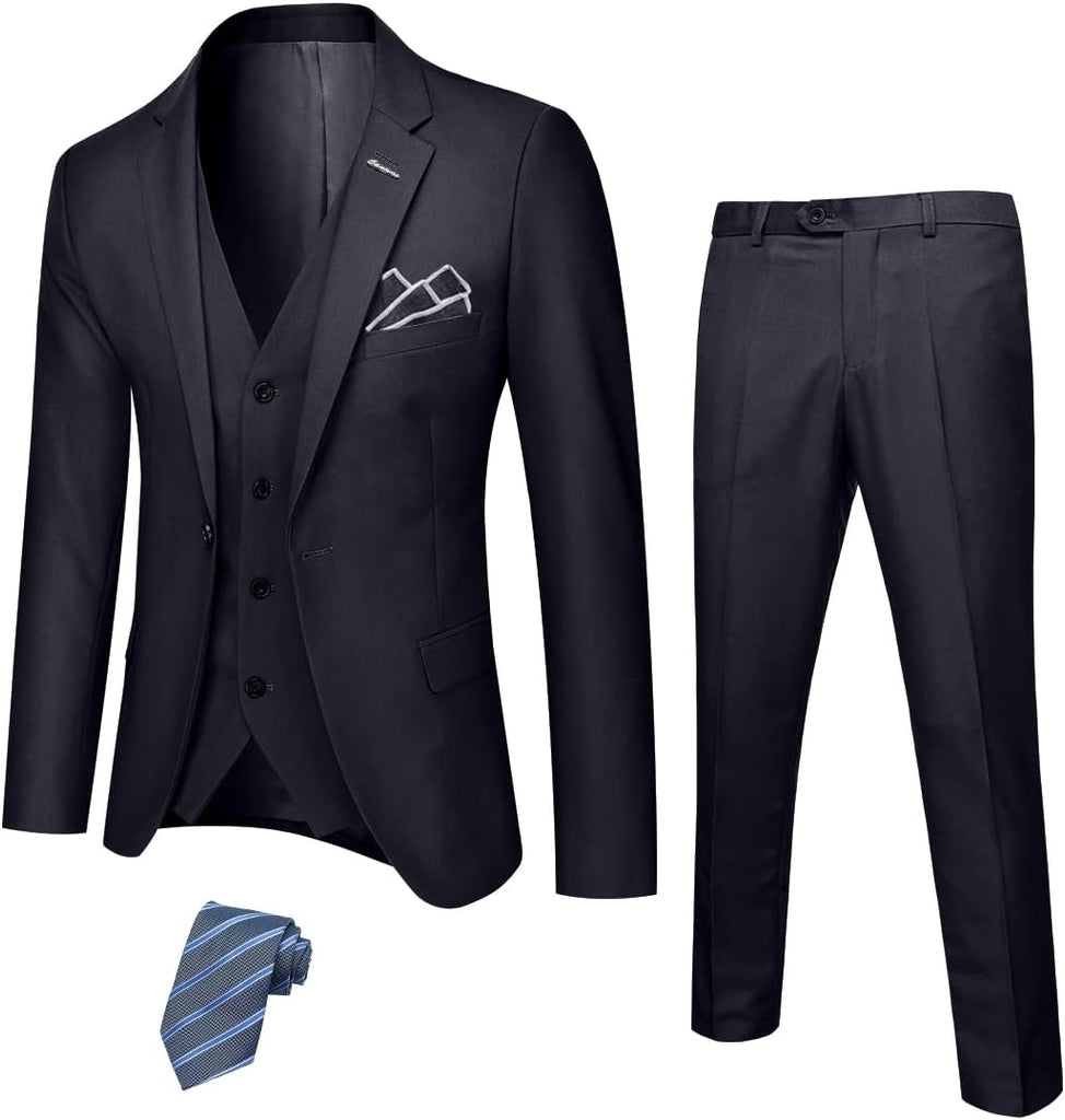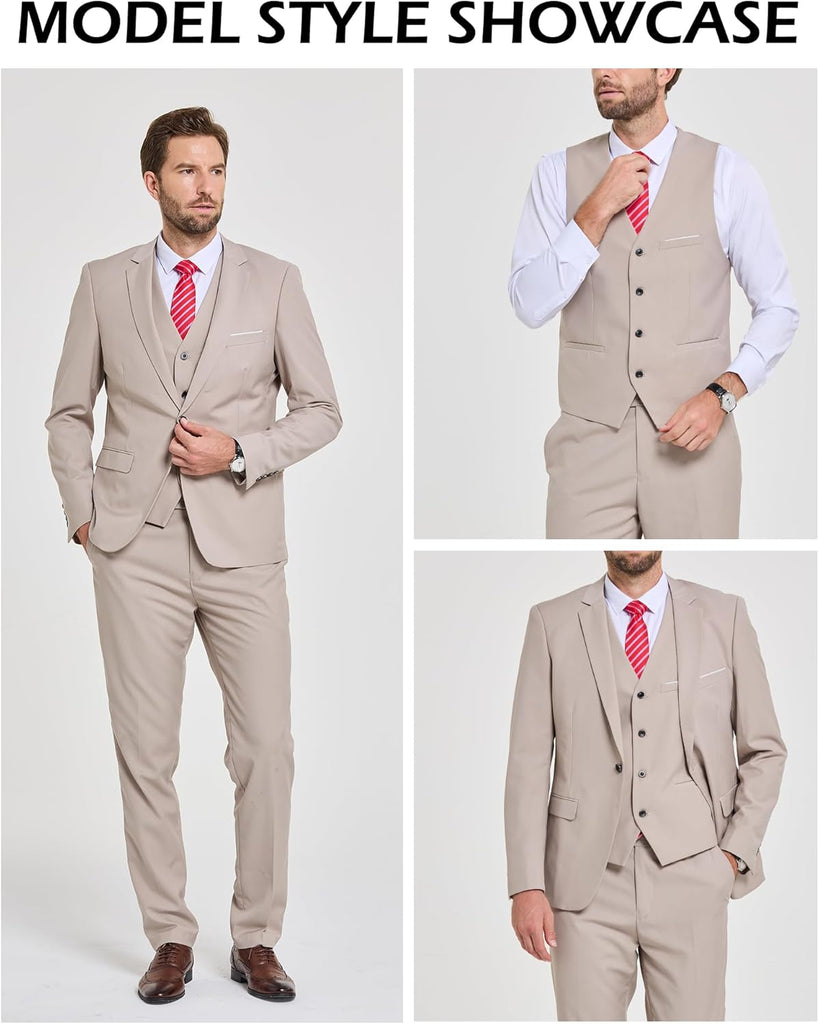 Men's 3 Piece Suit Set with Stretch Fabric, Slim Fit One Button Solid Jacket Vest Pants, Prom Party Wedding Business Suit
