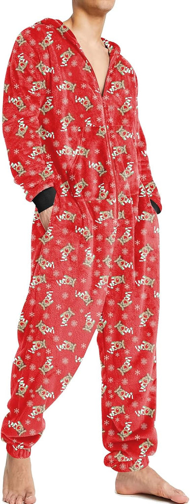 Fabric type: 100% Polyester. Care instructions: Machine Wash. Origin: Imported. Product Facts: Soft Comfortable Fabric - Our mens christmas onesie pajamas are made with a high quality, 100% polyester fleece that is ultra soft and warm. Brushed french terry interior for a luxuriously soft hand feel. Breathable and lightweight premium winter fleece one-piece pajamas will keep you warm, and comfortable. Hooded & Zipper Design - This one-piece pajama set features a fleece hoodie, allowing you to wear the hood from the cold winter. Full zipper closure makes it easy to take on or off. The front pockets of the adult onesie can keep your hands warm or items close by your side. Occassions: Mens onesie with allover fun snowflake, stripe light, reindeer pattern holiday printed patterns. Onesie pj is festive, holiday-Inspired design which can make the festival atmosphere colorful, give your family a happy and deep impression. Perfect for christmas, holiday, homewear or hang out. Great as Gift: Our christmas pajamas are suitable for your husband, son, father or friends. This soft and comfy onesie is perfect for holiday pictures, lounging at home, and homeware. For a great gift on Christmas Eve, there's no better option than this festive holiday pjs that they can wear in the morning and year-round, too! Who receive the onesie pajama is sure to get into the winter spirit with these sweet winter-themed adult pajamas. Warm Tips: This mens onesie pajama is machine washable, tumble dry at low heat, do not bleach. Remember to read the Size Table on the detail page or chat with Customer Service to recommend the size before placing an order.